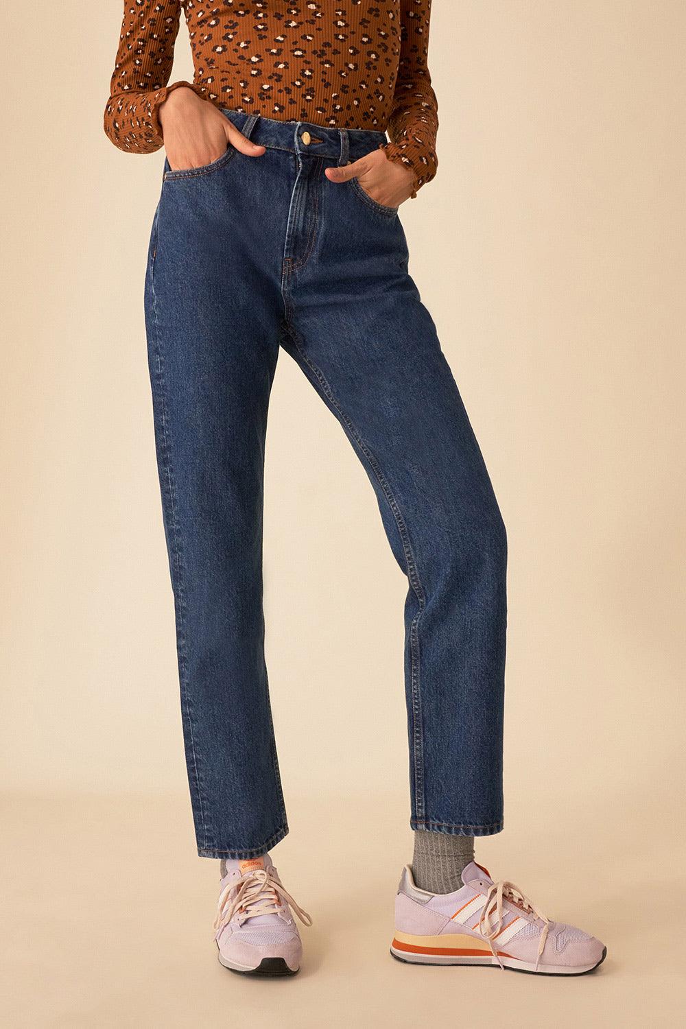 Sempre em busca do jeans perfeito que vai destacar o seu corpo? Não procure mais, aqui está. De corte reto e ligeiramente largo, vai adorar o seu comprimento até ao tornozelo e o seu autêntico tecido denim azul.