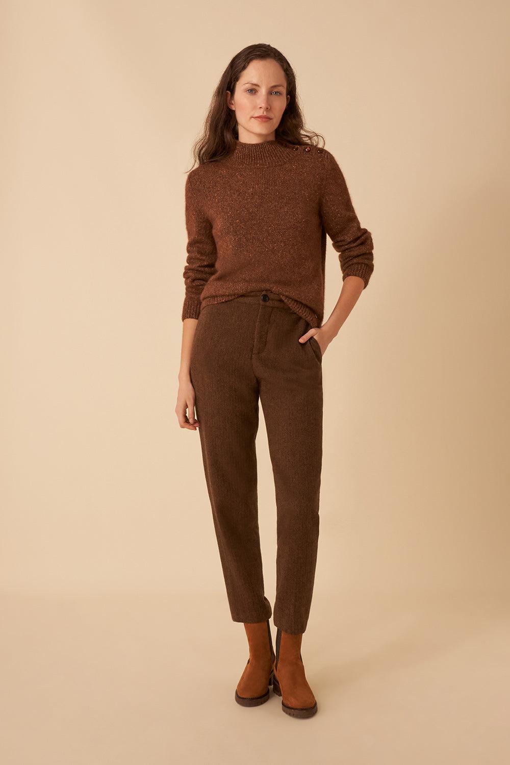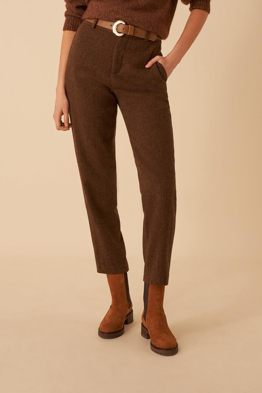 Nesta temporada, chega de calças lisas, opte por calças com estampa chevron para seus looks diurnos ou noturnos. Corte reto e minimalista, apaixone-se por este modelo com toques vintage.