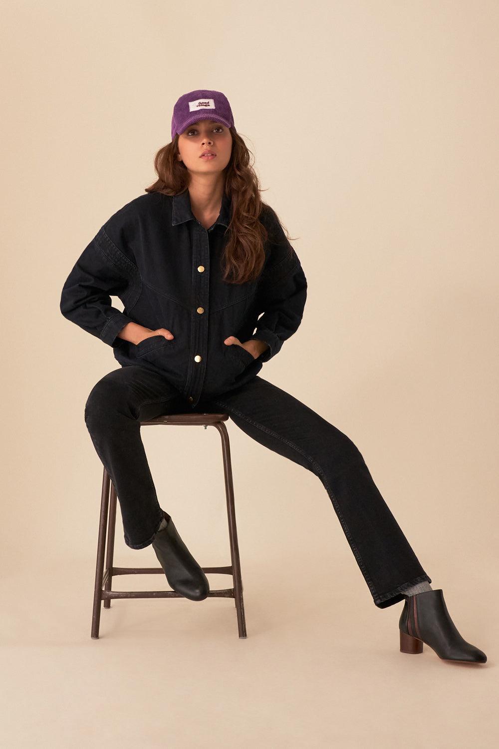 Nesta temporada, a icônica jaqueta jeans feminina é usada oversized e levemente apertada na base para adicionar um toque dos anos 90 aos seus looks. Disponível na versão de inverno com seu jeans preto, é impossível resistir a essa pepita de estilo