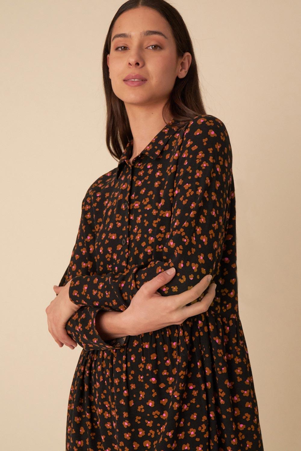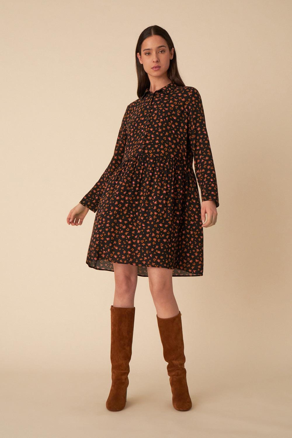 De mangas compridas e corte acima do joelho, este vestido boêmio com drapeado esvoaçante vai destacar sua cintura. Apresentando um poético padrão floral, você pode usá-lo com tênis ou botas para uma silhueta mais sofisticada.